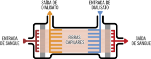 Na máquina de hemodiálise existe uma peça importante que se chama Dialisador.