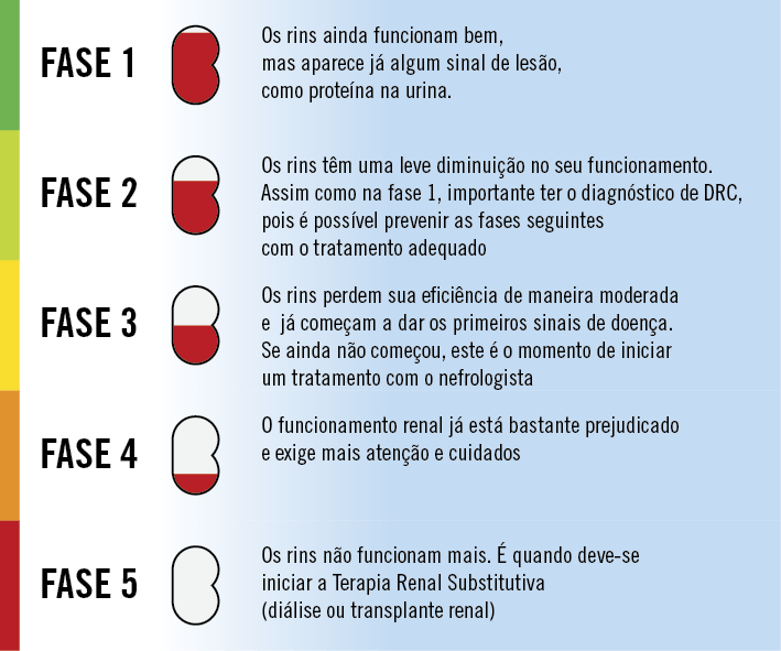 Doença Renal Crônica (DRC) é a incapacidade de os dois rins realizarem seu trabalho. Quando ela acontece, os rins funcionam pouco, muito pouco ou quase nada. Depende da fase da DRC.